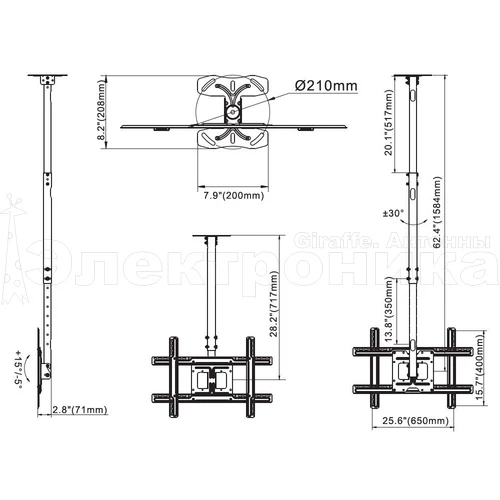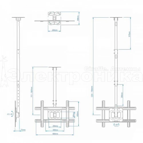 Расстояние от потолка: 717-1584 мм.