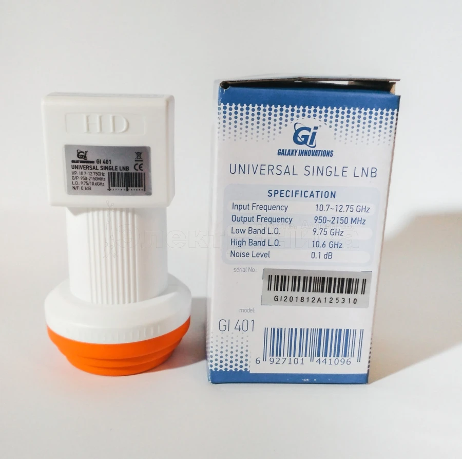 Gi-401 Universal Single – спутниковый конвертор линейной поляризации подходит для установки на основные спутники Astra, Amos, Hotbird, ABS (LM), Yamal.